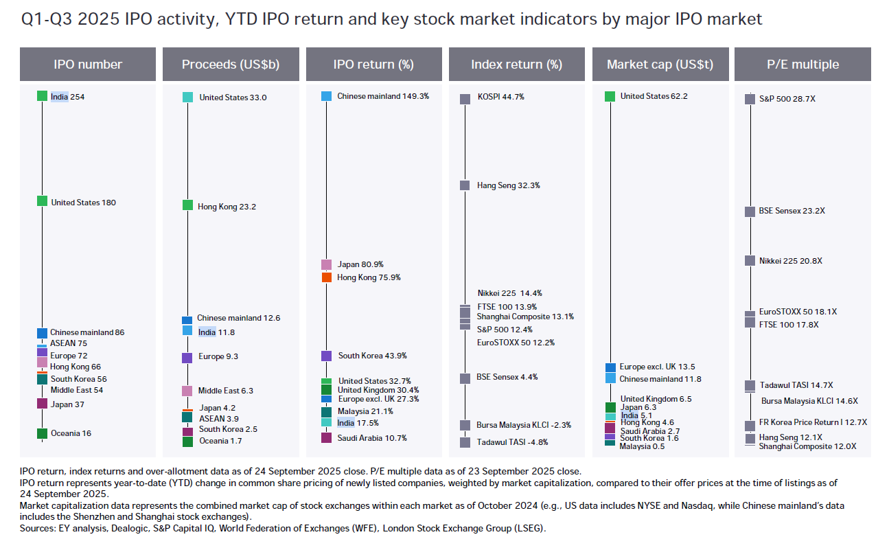 According to Ernst & Young ( EY ), Indian IPOs raised an impressive US$7.2 billion from 146 offerings between July and September. Over the first nine months of the year, the country accounted for 254 IPOs, approximately 30% of all global listings, leaving traditional financial powerhouses such as the United States and China trailing behind.